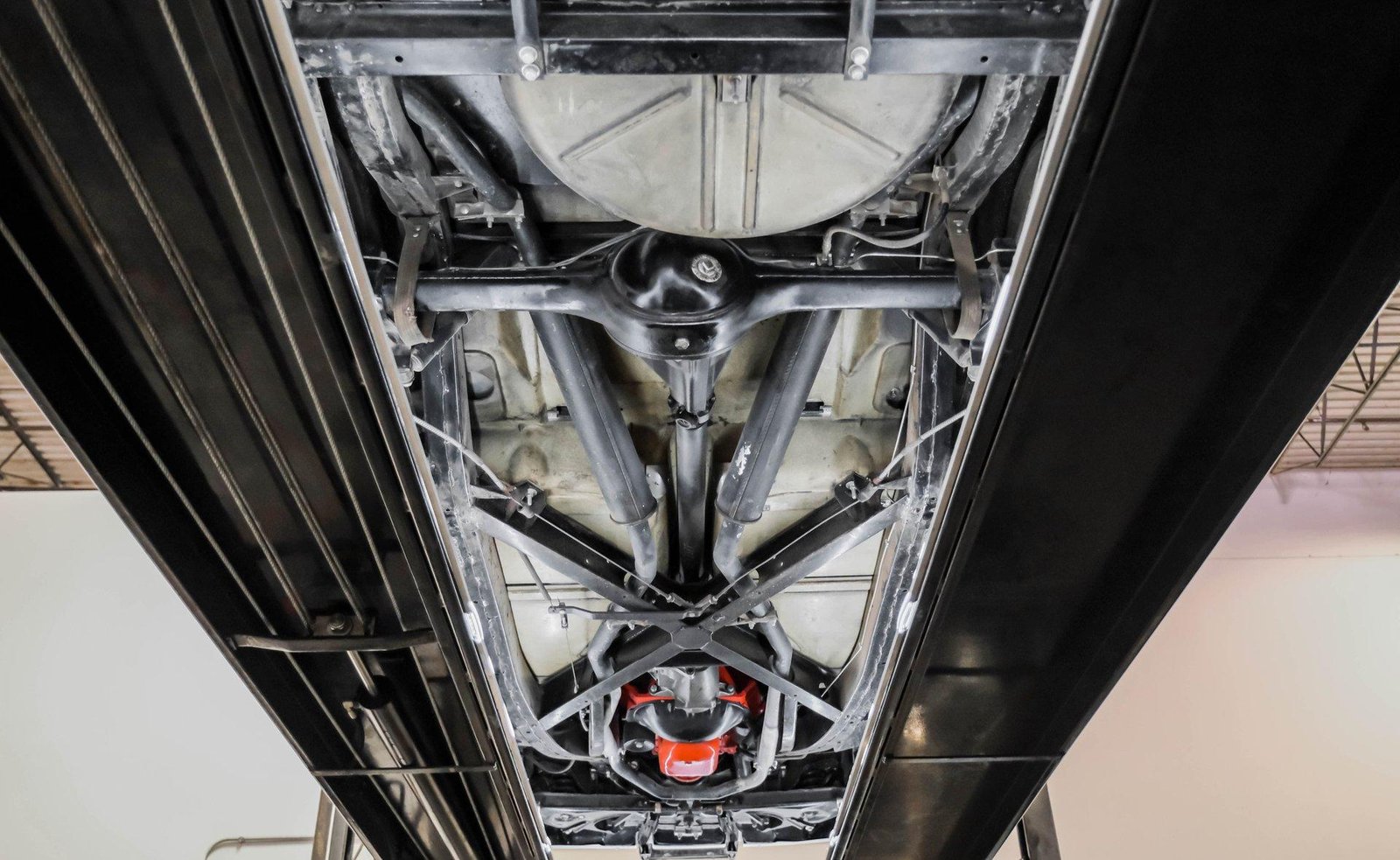 Mechanical: Factory-style suspension with front coil springs and rear solid axle with leaf springs, drum brakes, and dual exhaust system maintaining authentic 1950s Corvette performance and tone.