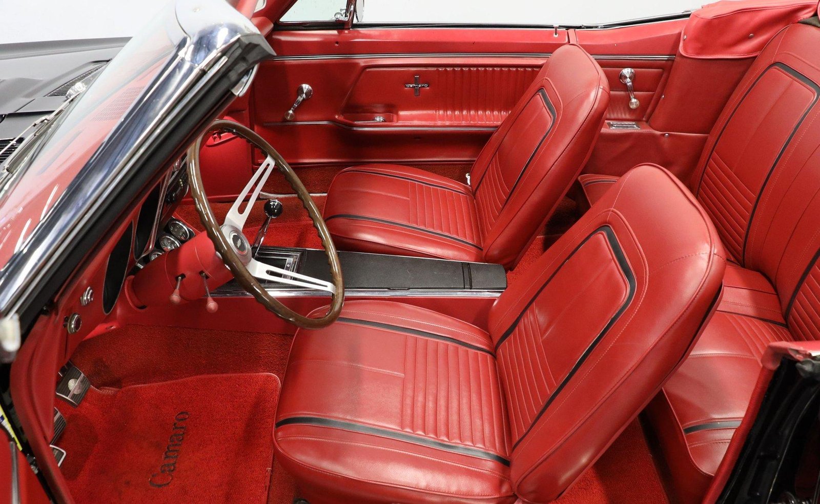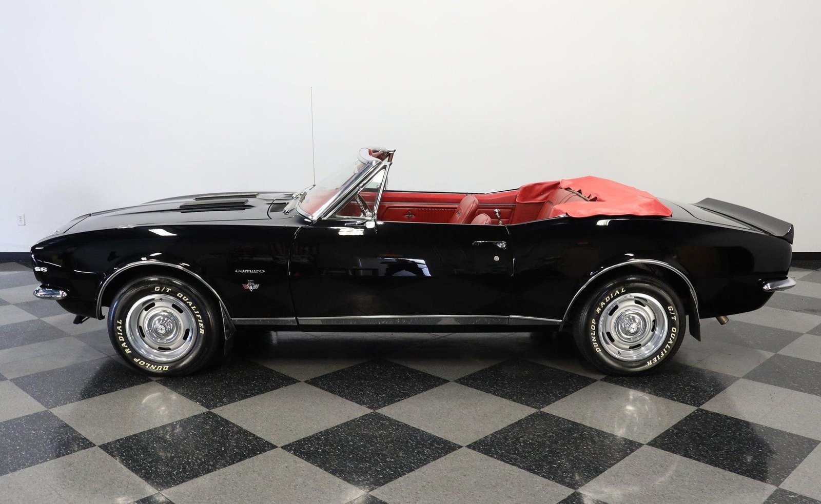 A stunning 1967 Chevrolet Camaro RS Convertible finished in Tuxedo Black with red interior — powered by a year-correct 327 V8 and 4-speed manual, combining authentic first-gen style with true American muscle performance.