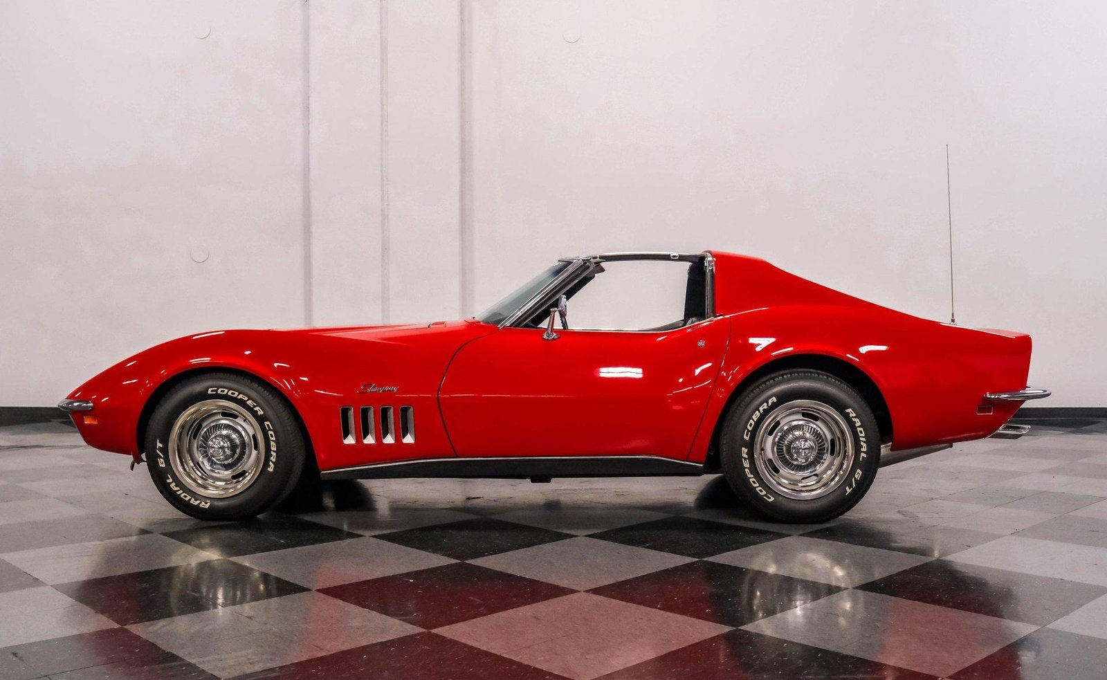 Exterior: Factory-correct Monza Red exterior, removable T-tops with pop-out rear glass, chrome bumpers, signature C3 fender gills, and rally wheels completing its unmistakable Corvette stance.