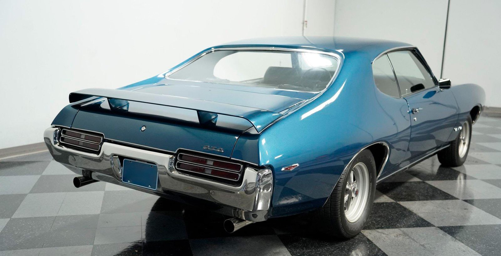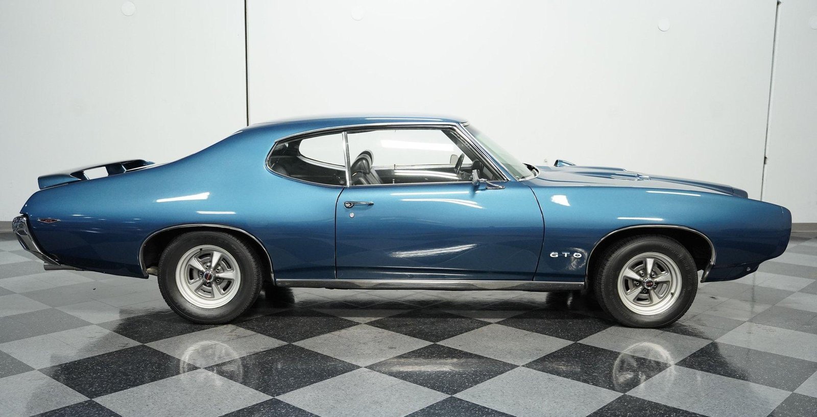A beautifully finished 1969 Pontiac GTO in Liberty Blue with black interior — powered by its numbers-matching 400 V8 and upgraded 4-speed manual transmission, offering authentic muscle car performance with modern touches.